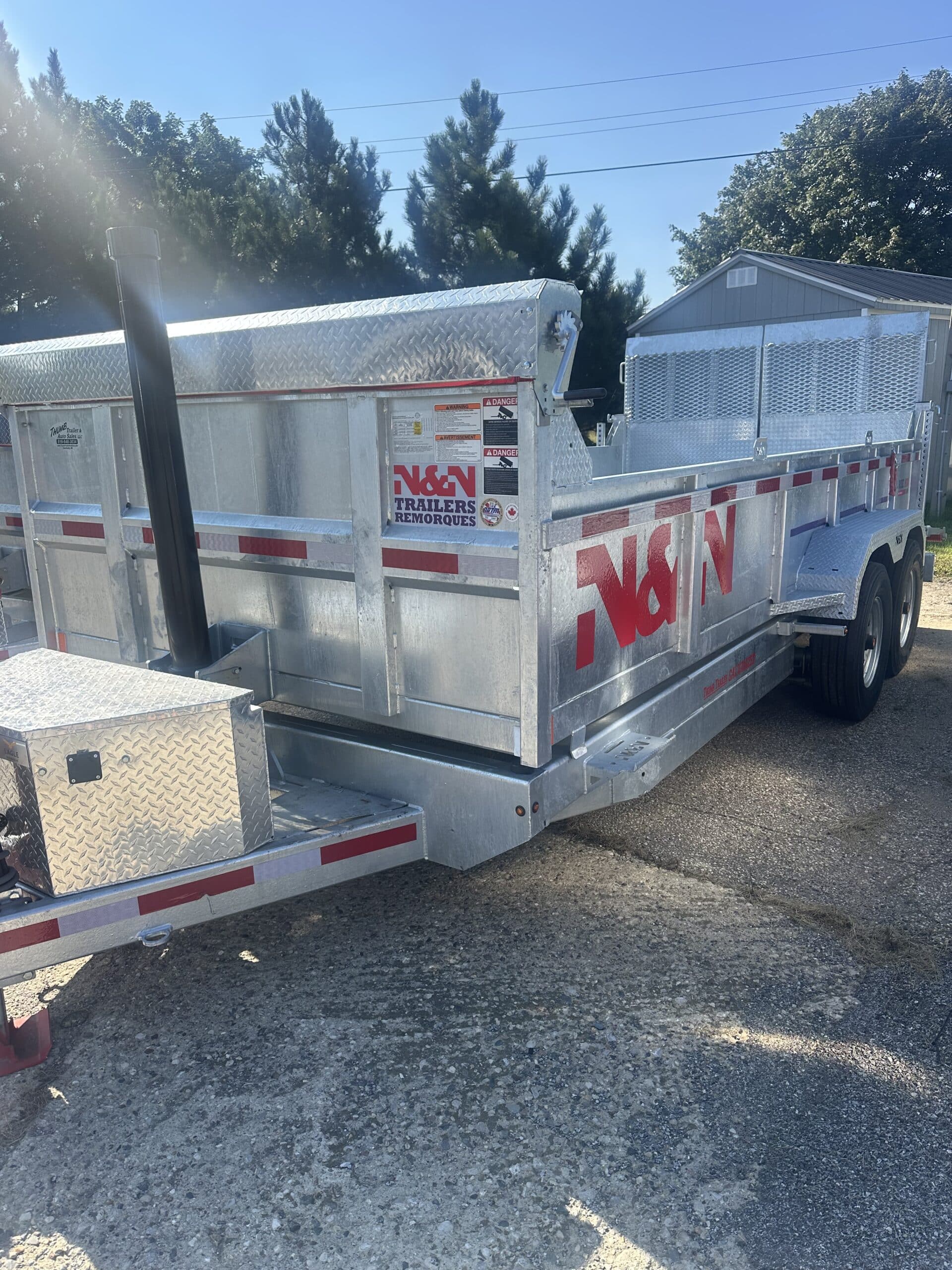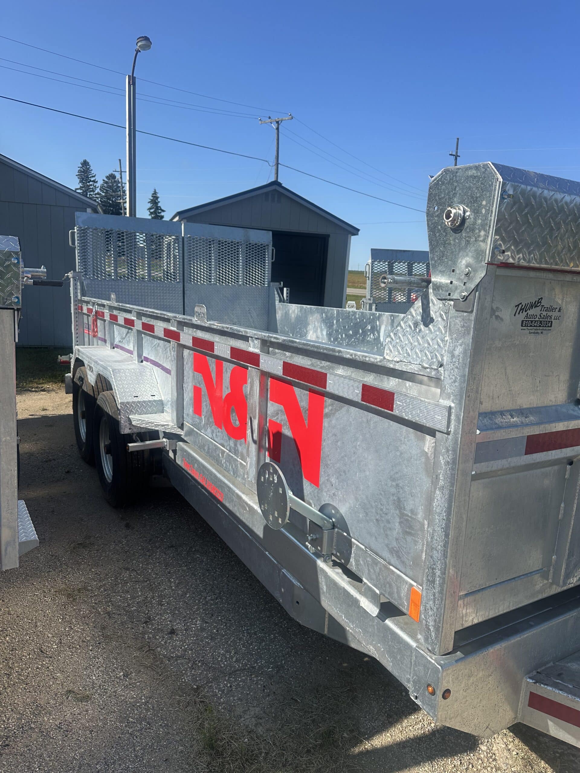 16 fooot 15k HD N&N dump trailer with combo gate and hydraulic jack. All of our HD trailers come with upgraded 12 inch on center carriers and 7 guage floors. Standard is 16 inch on center and 11 guage steel. We also order all of our N&N’s with tarps, spare tire mounts, wireless remotes and upgraded backup lights and charging system. Why buy a trailer that will rust out in a couple of our Michigan winters when you can get this N&N that will hold its value over time! The only updgrade on this trailer is an optional spare tire. Call us today to check out this trailer.