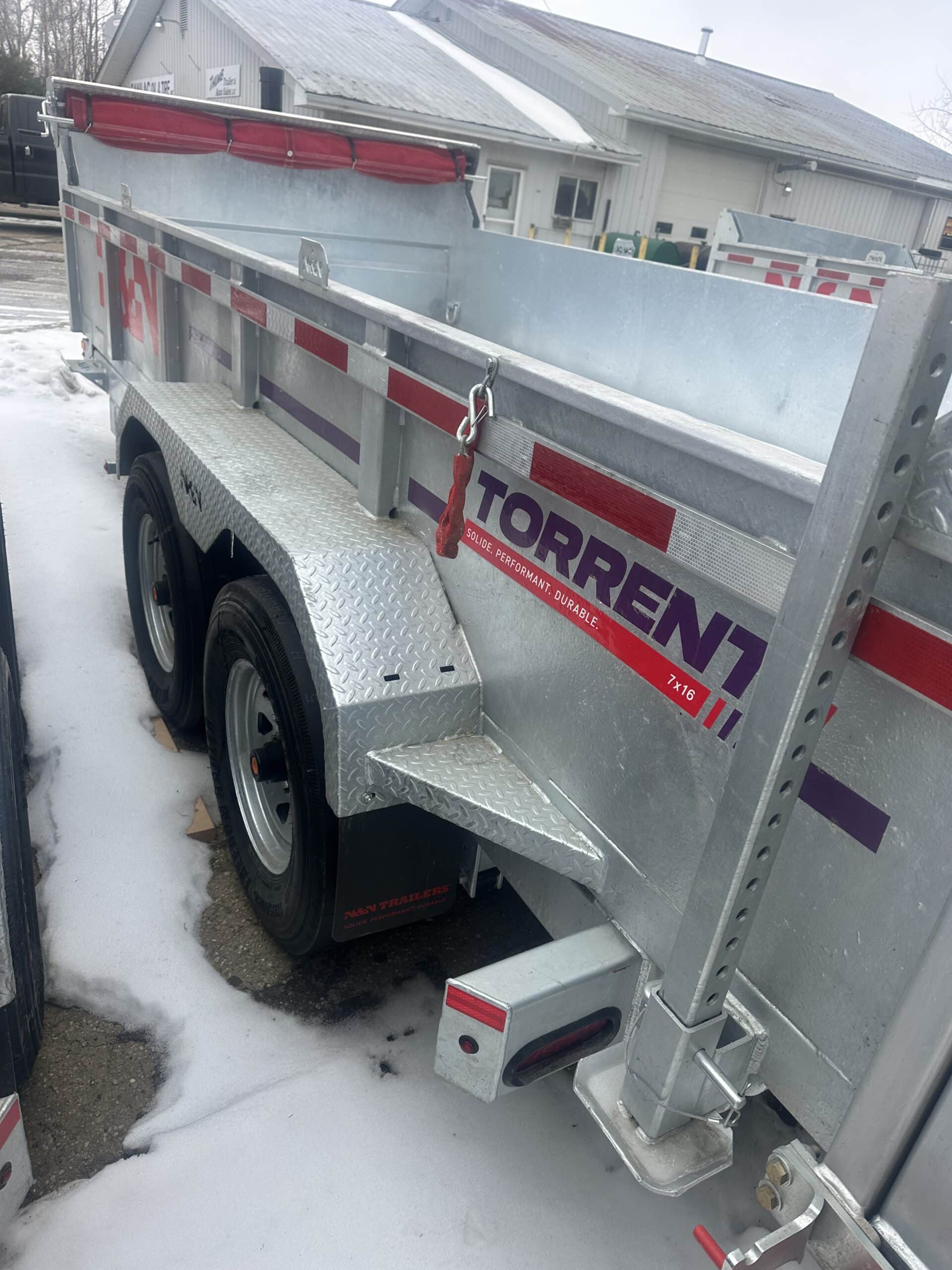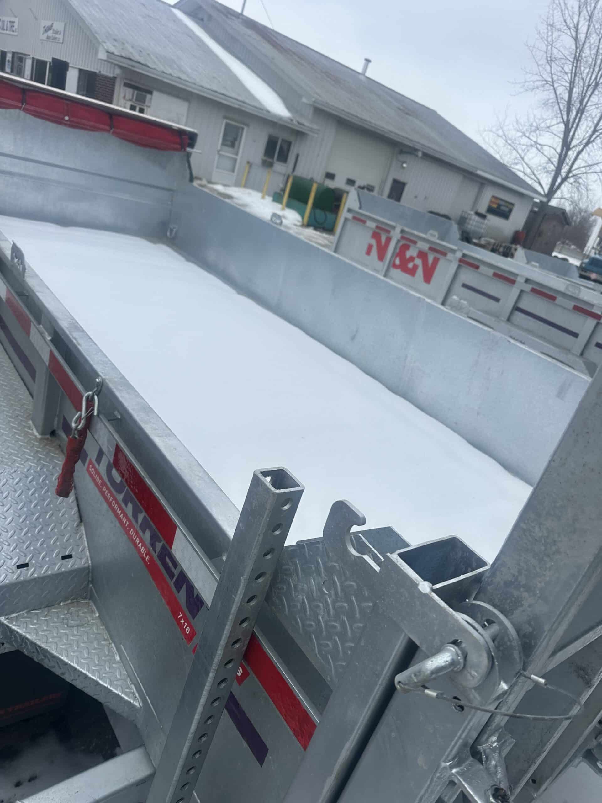 In Stock and ready to go. 12 foot with Hydraulic Jack and Combo gates. Tarp rear stabilizer stands included. 12 inch on center carriers and 7 guage floors (16 inch and 11 guage are standard we are the only source for these heavy floors) Upgraded back up lights and remote control inluded on on all of our N&N units. Galvanized to last years of heavy duty use with minimal care. See why people come from all over the midwest to get a rust proof N&N trailer from Thumb Trailer! Free delivery in Michigan’s lower penninsula!.